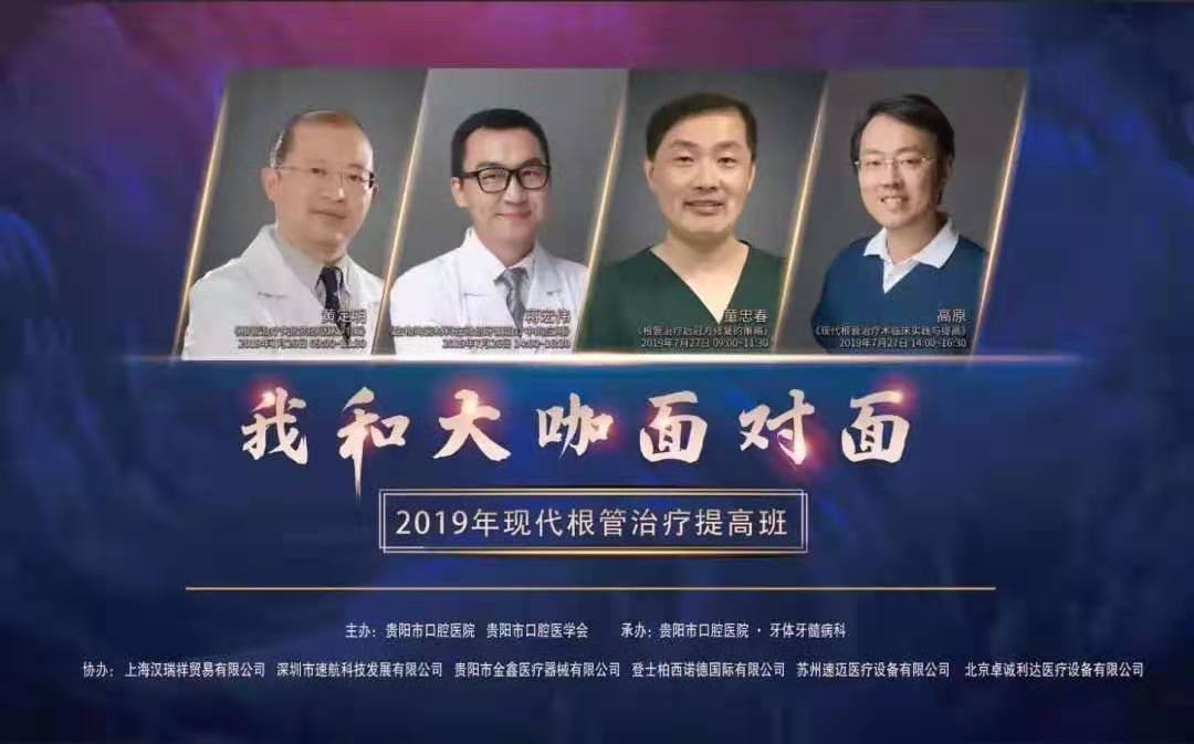 2019.7.26 —7.28 速航協辦的2019年現代根管治療提高班在貴陽市口腔醫院新院區圓滿結束。本次培訓班有幸邀請到了四川大學華西口腔醫學院黃定明教授、高原副教授,中山大學光華口腔醫學院蔣宏偉副教授、童忠春博士四位業內大咖作為演講嘉賓,課程采用理論與實操結合的方式進行現場教學。