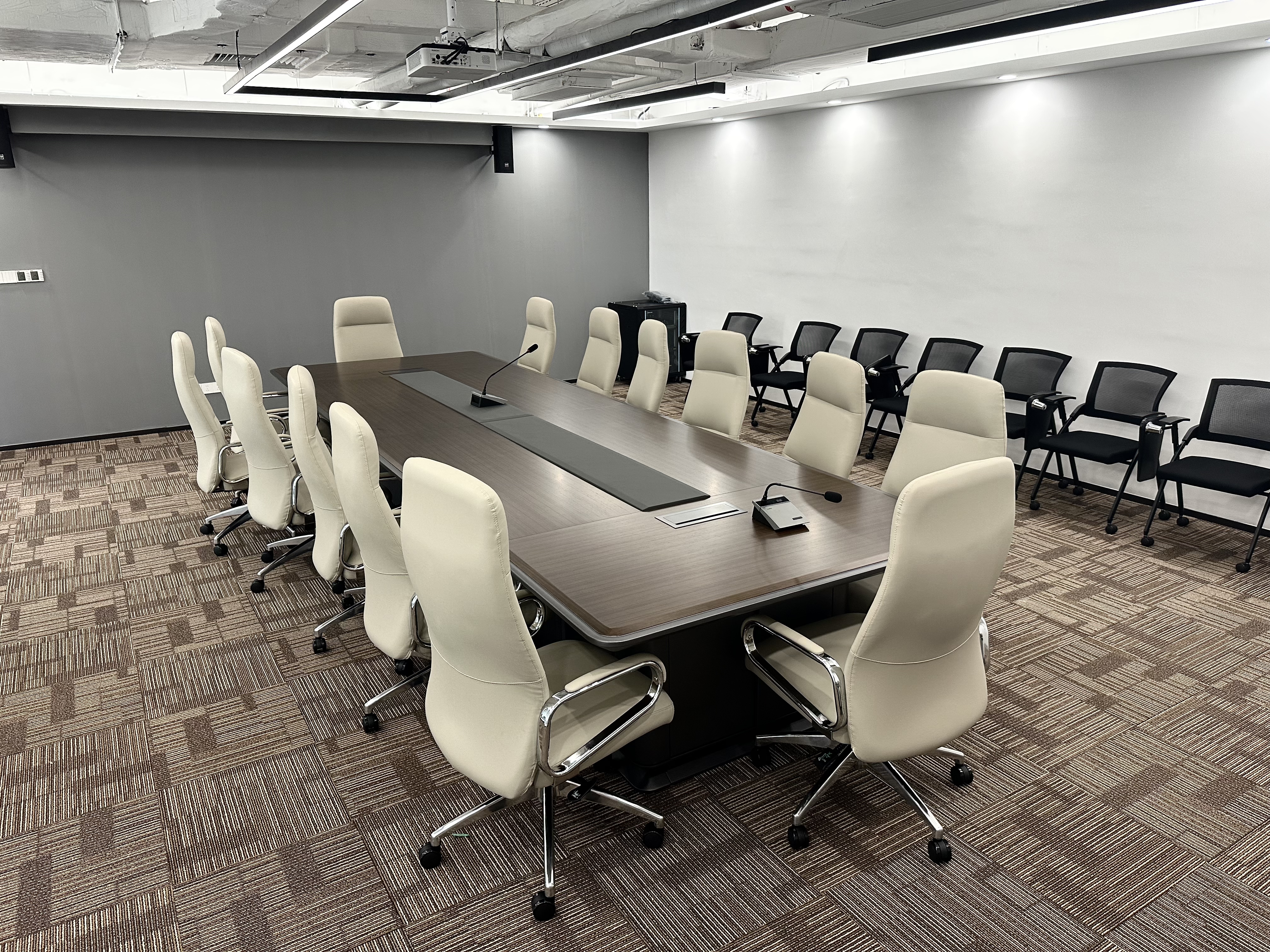 經(jīng)過辦公區(qū)域,來到了我們的大會議室,簡約大氣的設(shè)計風(fēng)格,搭配上適合久坐的辦公靠椅,真不錯。