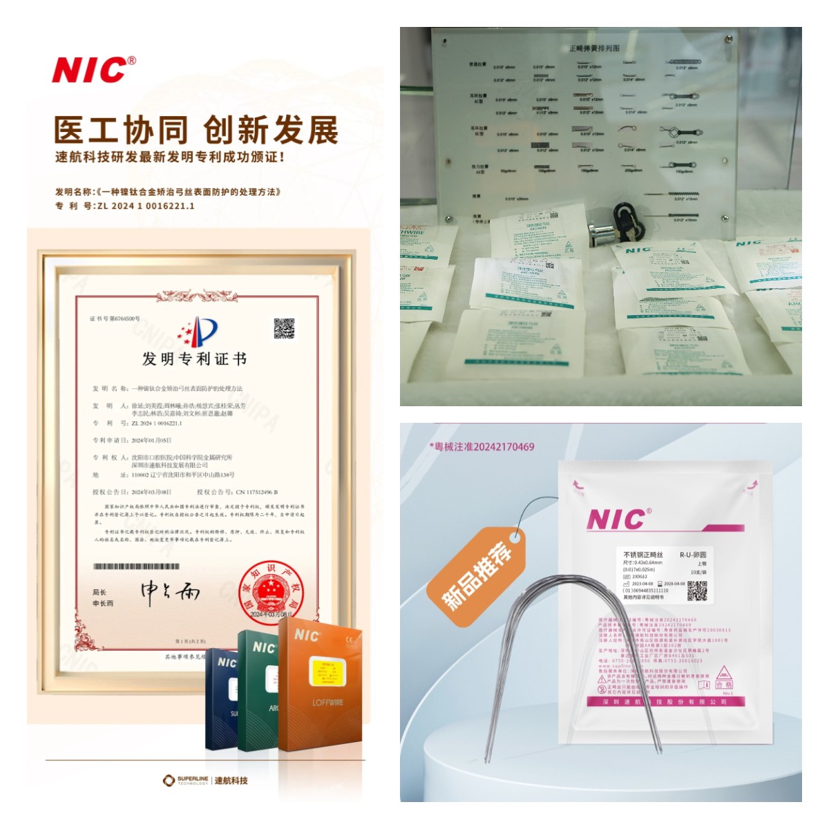 速航科技旗下正畸品牌NIC在本次大會(huì)上展示其在口腔正畸領(lǐng)域的最新專利與產(chǎn)品。最新專利為“一種鎳鈦合金矯治弓絲表面防護(hù)的處理方法”。